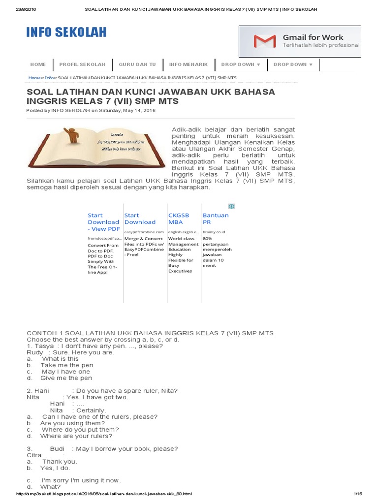 Soal Latihan Dan Kunci Jawaban Ukk Bahasa Inggris Kelas 7 Vii Smp Mts Info Sekolah